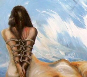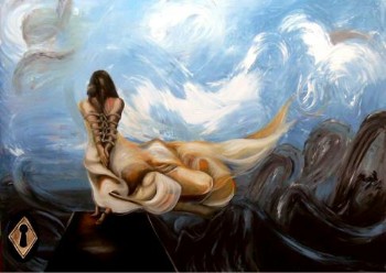 Größe:140 - 100 cm Preis: auf Anfrage art@sweet-retreat-gallery.de | Lust und Schmerz. Vertrauen, bedingungslos  Im Raum von Zeit und Wolken gehend auf dem unsicheren Pfad des Lebens in eine ungewisse Zukunft hinein, schaue ich mit leidenschaftlichen mir selbstaufelegten Fesseln in einen Abgrund, der mich betört und verstört / die Wogen der Lust peitschen mir ins Gesicht, aber das zeige ich dir nicht, es zieht mich hinunter in dunkele Gefilden, aber es bringt mich auch in den blauen Himmel ..nahe zu einem göttlichen Gefühl. Bildbeschreibung von Ralf! |  |
